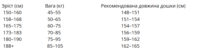 - Для фристайлу → бери коротшу довжину (мінус 2–3 см від рекомендації).